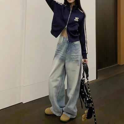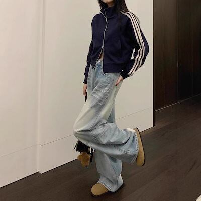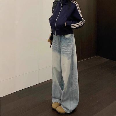 【3日以内出荷】脚長効果!デニムパンツ 2025 春秋 ストレート ルーズ ジーンズ レディース ハイウエスト スリム レトロ ワイドパンツ 韓国ファッション