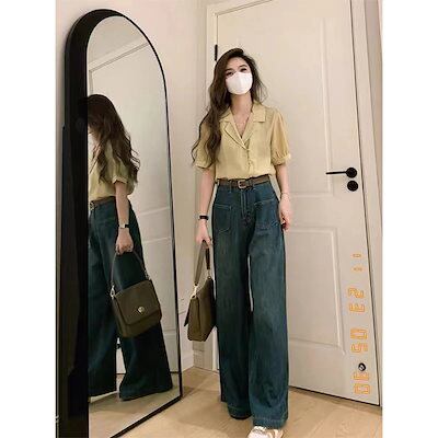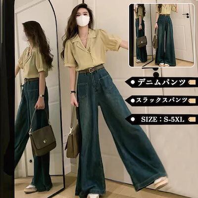 【3日以内出荷】スラックスパンツ デニムパンツ 大きいサイズ ジーンズ レディース 2024 新作 ハイウエスト スリム ゆったり デザイン モップ本 ワイドパンツ 韓国