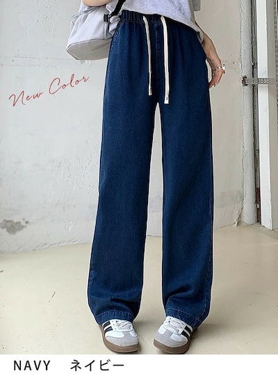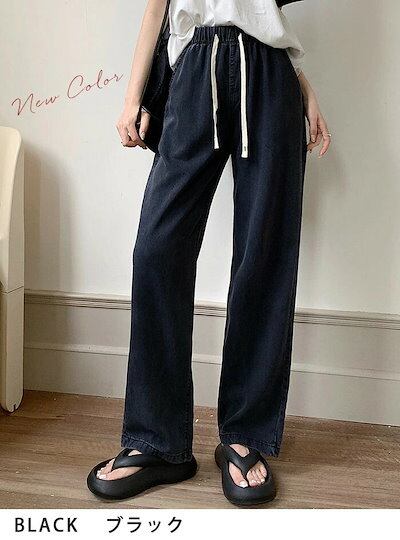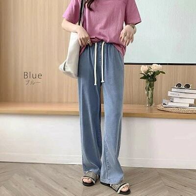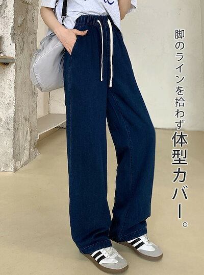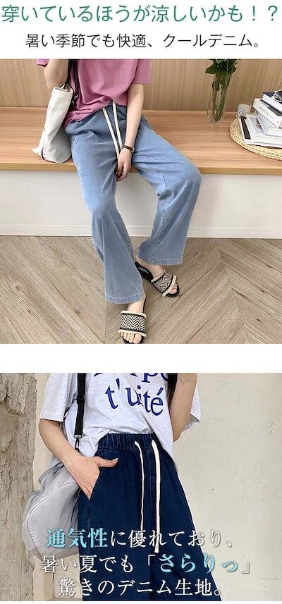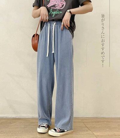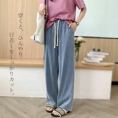デニムパンツ レディース ワイドパンツ ウエストゴム デニム 接触冷感 春 夏 ひんやり UVカット 無地 薄手 涼しい ロング丈 ストレートパンツ ジーンズ ゆるパンツ ガウチョ 体型カバー ボトム