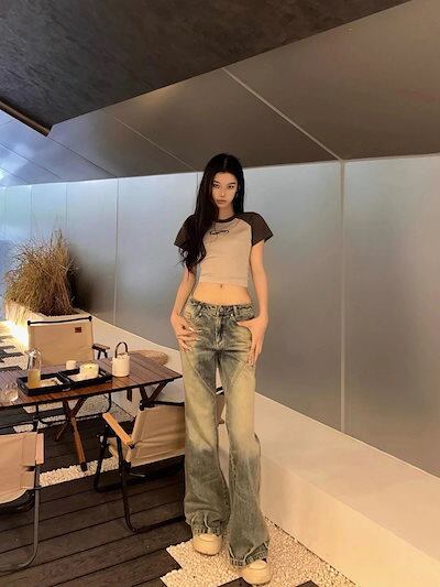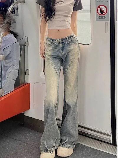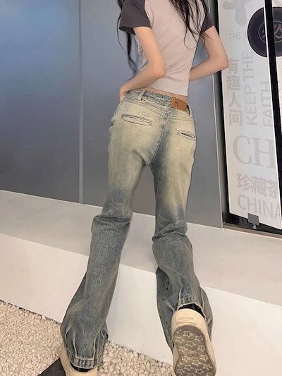 新作 秋 アメリカンレトロ水洗い旧ローライズマイクロラッカージーンズデザインストレートスリムワイドレッグモップパンツ デニムパンツ メガ割