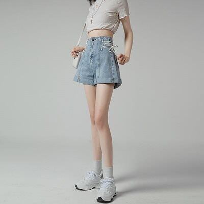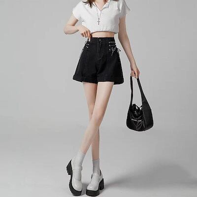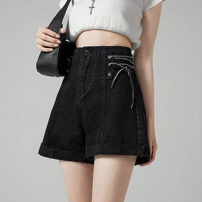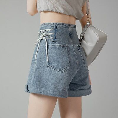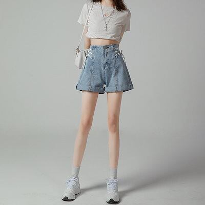デニムボトムスハイウエストデニムパンツ女性薄2023 新作ゆったりワイドデザイン感ショートパンツ ボトムス