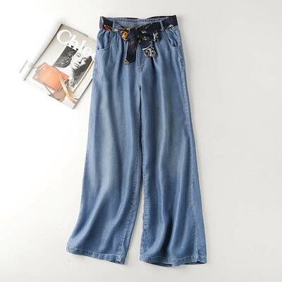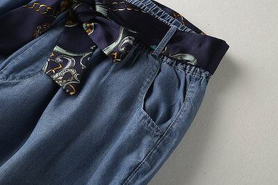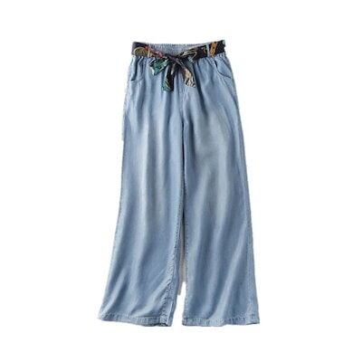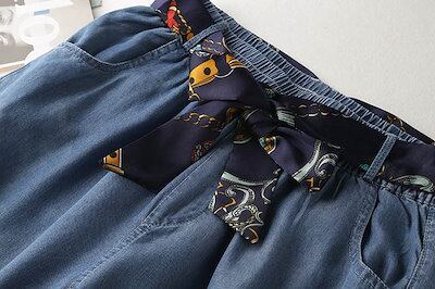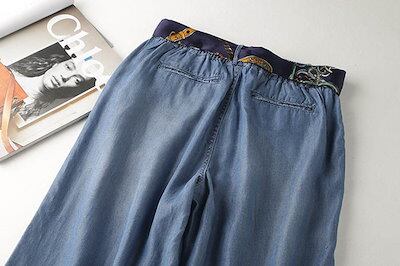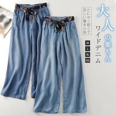 デニム パンツ レディース ジーンズ デニムパンツ ワイドパンツ 涼しい ボトムス アンクル丈 リラックスパンツ 9分丈 ゆったり ハイウエスト 大人 楽ちんウエストゴム ポケット付き 体型カバー ボ