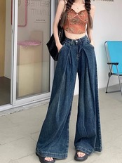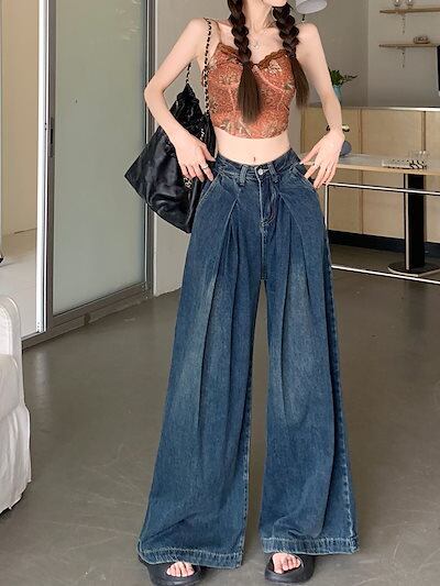 激?れ人気商品 脚長効果!デニムパンツ かっこいい!スラックスパンツ ストレートジーンズ 美脚 着痩せ 春夏 プリーツ レトロ水洗 ゆったり ワイドパンツ