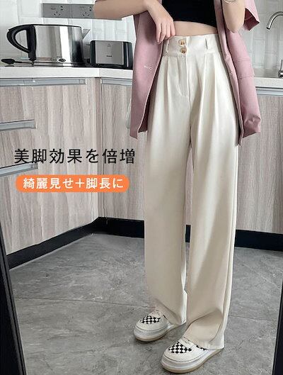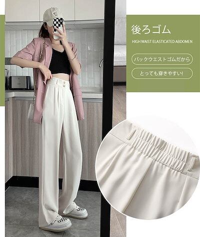 タックパンツオンリーウォンレディースなワイドパンツ 秋 ボトムス ワイド パンツ きれいめ カジュアル イージーパンツ ストレートパンツ ウエストゴム ロングパンツ タック スラックス バックゴム ロ