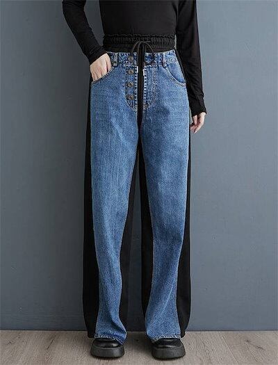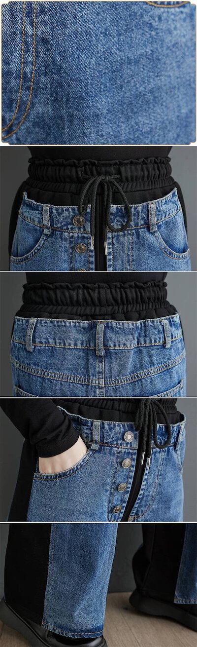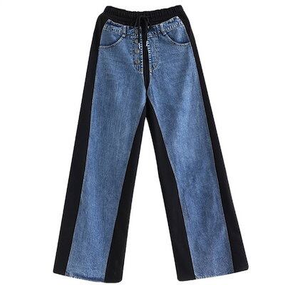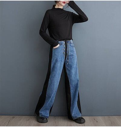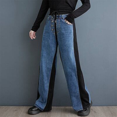 デニム違いを実感パンツなレディース ストレートパンツ デニムパンツ ロングパンツ ロング デザイン感 配色 ボトムス 春 秋 冬 ハイウエスト ポケット レトロ 着痩せ 美脚 大人 ゆったり 無地 通