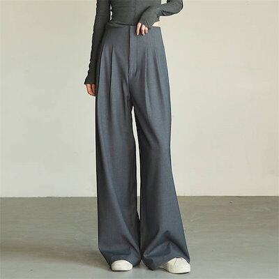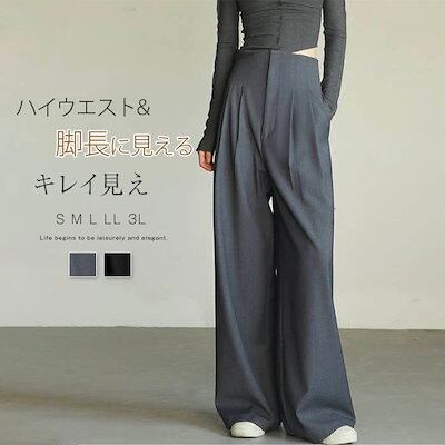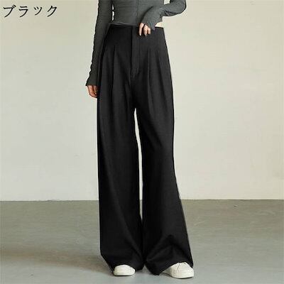 パンツお試し価格スラックスにレディース タックパンツ ルーズ ハイウエスト ワイドパンツ ストレートパンツ 脚長 着痩せ ボトムス ズボン オフィスカジュアル 長ズボン ロングパンツ スリム ゆったり