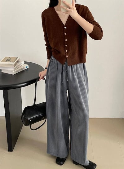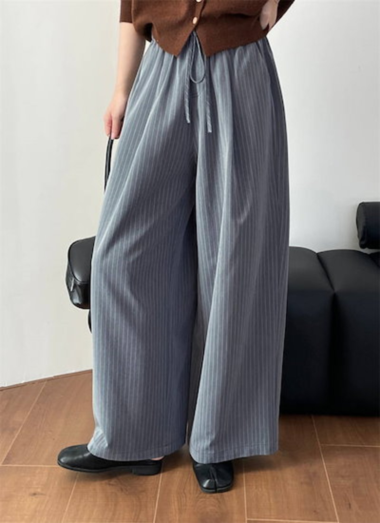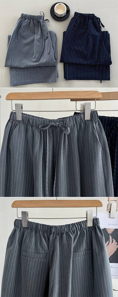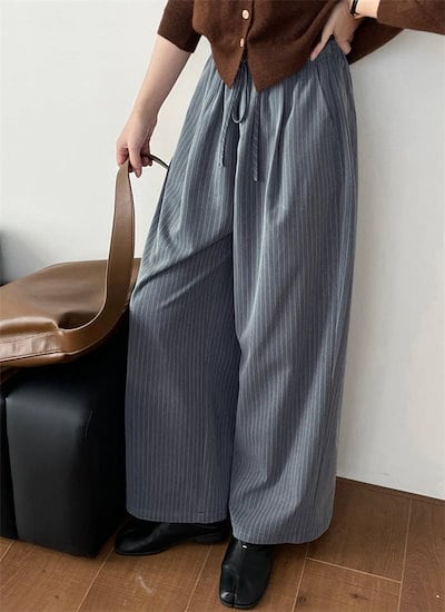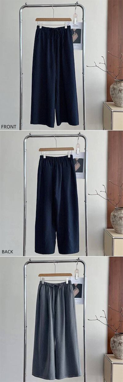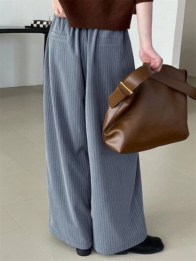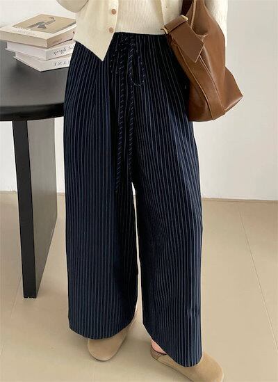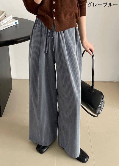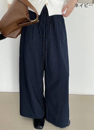 パンツゴーロングパンツでレディース 新作 ストライプ ボトムス ワイドパンツ ストレートパンツ ロング丈 ウエストゴム 紐 大きいサイズ ゆったり 長ズボン ストレート 美シルエット ワイド カジュア