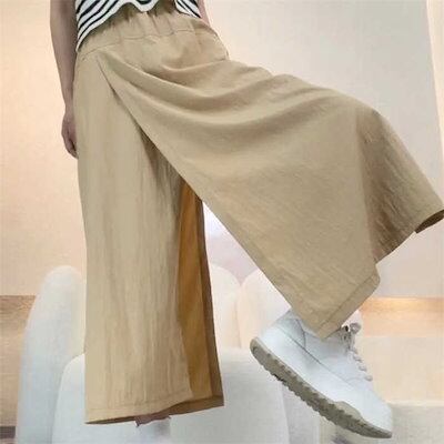 パンツクール新作に無地 ワイドパンツ パンツドレス アシンメトリー レディース ストレートパンツ 春 夏 8分丈 ロングパンツ ワイド ゆったり ロング 体型カバー デザイン感 ボトムス ハイウエスト