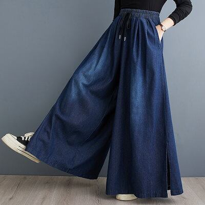 パンツ衝撃の安さボトムとデニム チノ ワイドパンツ 股上深め ストレート スリット ゆったり 体系カバー プチプラ 美脚 華奢見え 着痩せ 脚長効果 大きいサイズ 春 夏 秋 冬 レディース