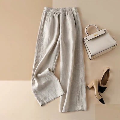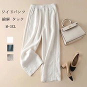ワイドパンツ心地よい毎日レディースは綿 麻 リネンパンツ 春 夏 タック ウエストゴム ハイウエスト ロング パンツ ストレート ポケット付き コットン ゆったり オフィス ボトムス ワイド 無地 ホ