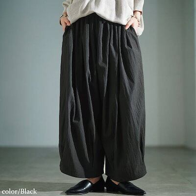 ゴールドジャパン大きいサイズ レディース パンツ ズボン 裾タックワイドパンツ ボトムス ロングパンツ ワイドパンツ タックパンツ ロング ワイド タック ウエストゴム ポケット ギャザー 無地 秋新作 秋服 冬服