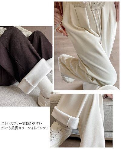 新登場! 裏起毛ワイドパンツ ポケット付き レディース 秋冬 体感+5℃ あったか リブ ワイドパンツ カジュアル ボトムス 極暖 裏ボア リラックスパンツ ゆったり 低身長 高身長 ウエストゴム