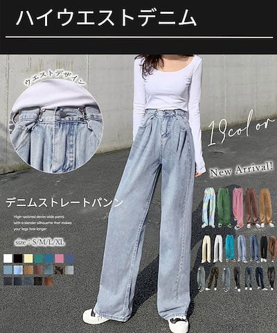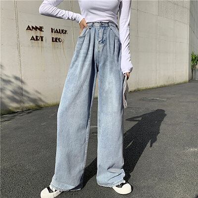 送料無料ハイウエスト デニム ワイドパンツ 韓国 レディース ゆったり ストレートパンツ ストリート 着やせ ジーパン10代 20代 30代 美脚 ロングパンツ 春秋夏冬