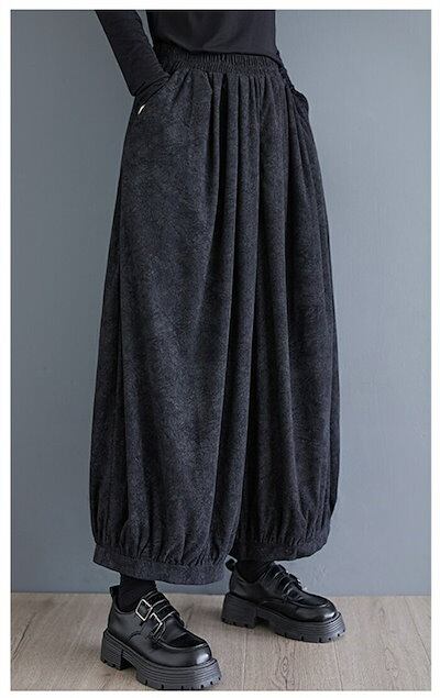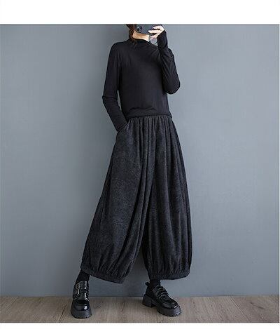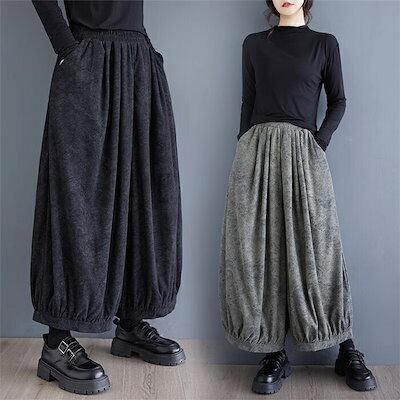 バルーンパンツ ワイドパンツ ロング レディース 黒 コーデュロイ 大きいサイズ ワイド ボトムス 秋 秋物 秋冬 シンプル きれいめ ブラック カジュアル あったか ロングパンツ マキシ丈 暖かい