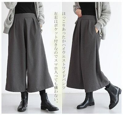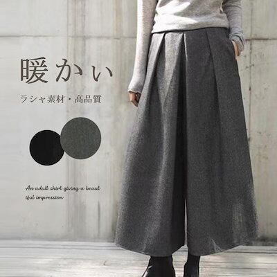 ワイドパンツ ロング丈 パンツ レディース 長ズボン ロングパンツ ふんわり 秋冬 暖かい ボリューム 冬 ゆったり アンクルパンツ 九分丈 体型カバー 美脚 細見え ウール 防寒 保
