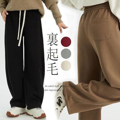 裏起毛 ワイドパンツ ガウチョパンツ パンツ レディース 冬 ワイド カーブパンツ スウェット ウエストゴム ゆったり 体型カバー ジャージ 厚手 裏起毛パンツ スウェットパンツ 裏ボア あっ