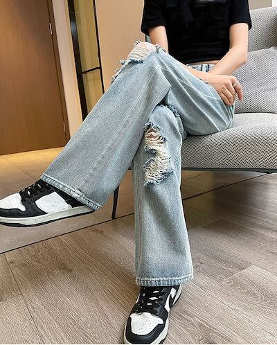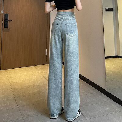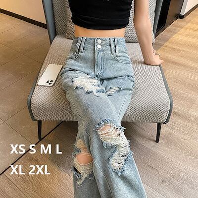 大きいサイズレディース パンツ ダメージデニム ジーパン クラッシュ デニム ダメージ ジーンズ ワイドパンツ レディースダメージ加工デニムパンツ 学生ゆったり ゆる 大きめ 春 秋 冬 ボトムス