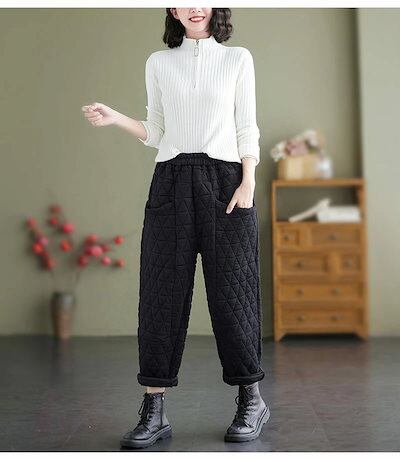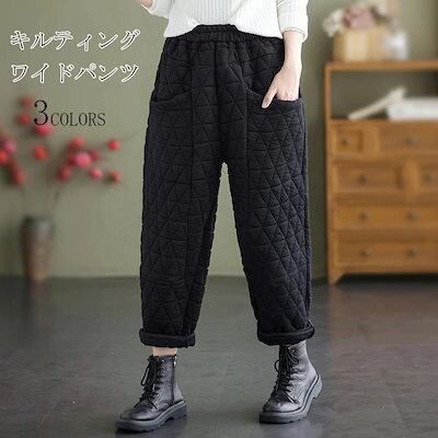 ワイドパンツ パンツ レディース キルティング ロングパンツ ガウチョパンツ 冬 ロング丈 ワイド 体型カバー 大きいサイズ パンツ ズボン ロング ボトムス ガウチョ バルーンパンツ 秋冬 ウエスト