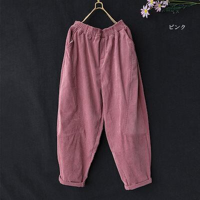 パンツ レディース 冬 パンツ コーデュロイ ワイド ロングパンツ ウエストゴム 秋冬 パンツ ロング コクーン タックパンツ パンツ きれいめ ボトムス テーパードパンツ ハロンパンツ ハイウエスト