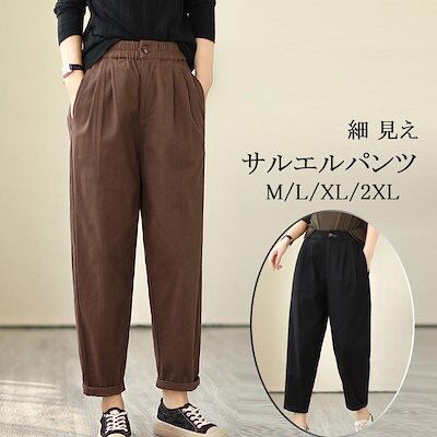 パンツ ロングパンツ ワイドパンツ レディース 秋 冬 ガウチョ 大きいサイズ ボトムス ロングパンツ ウエストゴム ロング丈 パンツ 総ゴム ハイウエスト 長ズボン 無地 ポケット付き 体型カバー