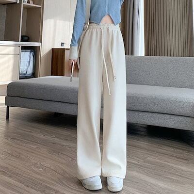 韓国 厚手 裏起毛タイプ ゆったり快適なワイドパンツ 韓国ファッション コーデュロイワイドパンツ レッグパンツ レディース秋冬ハイウエスト ゆったりスリム縦型 カジュアルパンツ