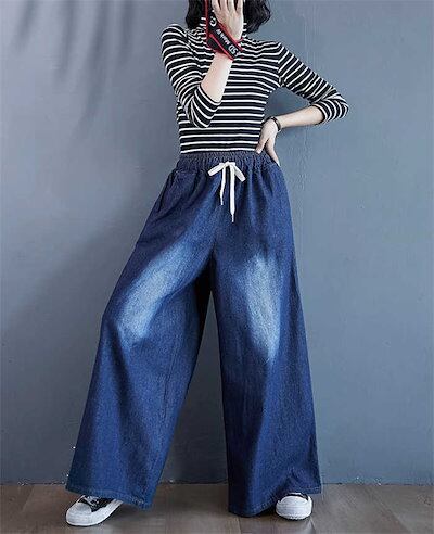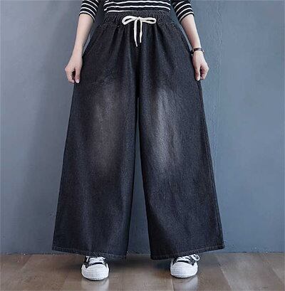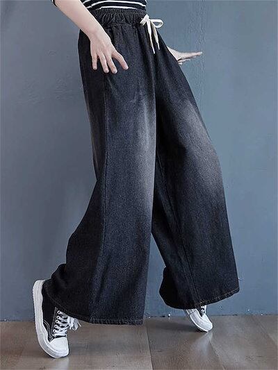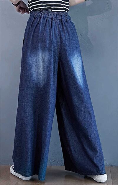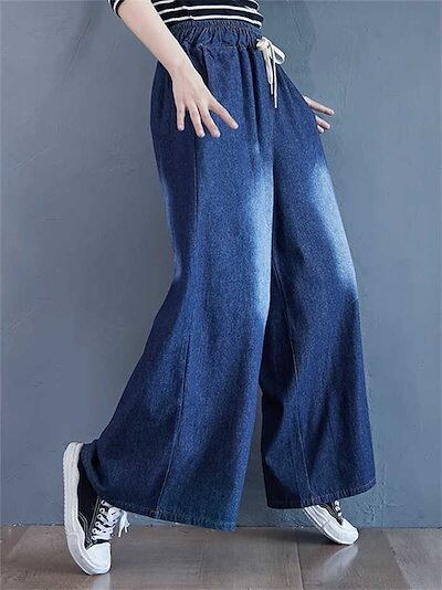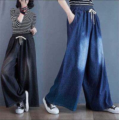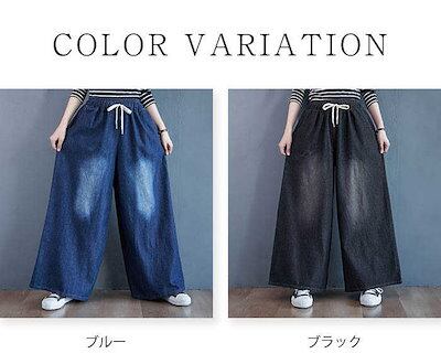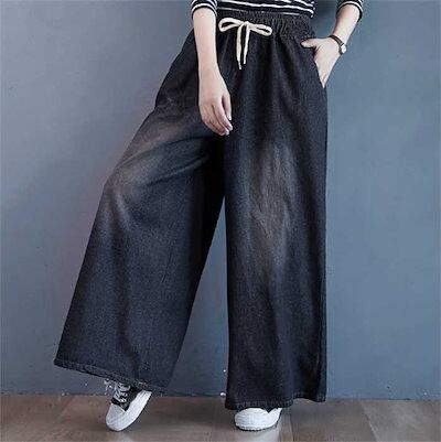 デニム ワイドパンツ ガウチョパンツ デニムパンツ レディース ロング パンツ ボトムス ジーンズ 無地 体型カバー ロングパンツ シンプル 大きいサイズ 秋 冬 ハイウエスト 着痩せ 美脚 通勤 O