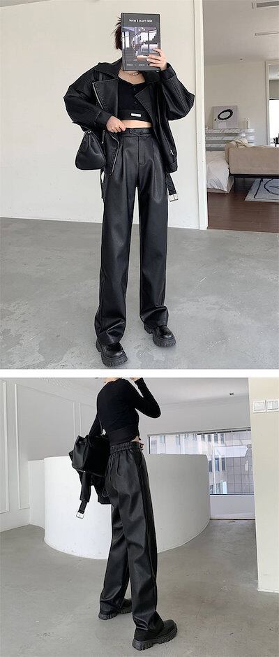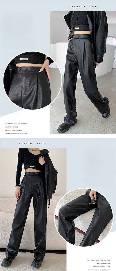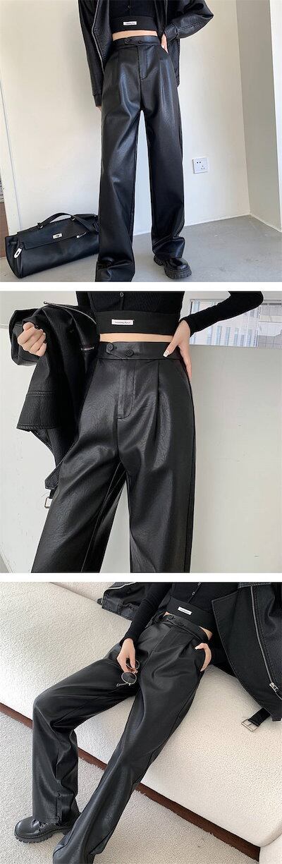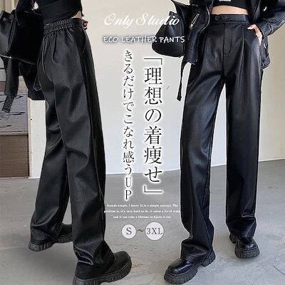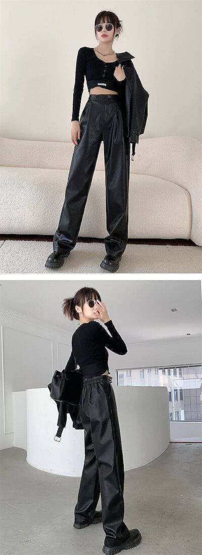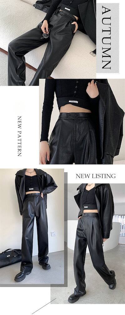 レディース レザーパンツ PUレザー 合皮 革パンツ ロングレザーパンツ ハイウエスト 女性 ワイドパンツ 美脚効果 ボトムズ 無地 カジュアル ゆったり ファション 秋 冬 体型カバー 通勤 お出か