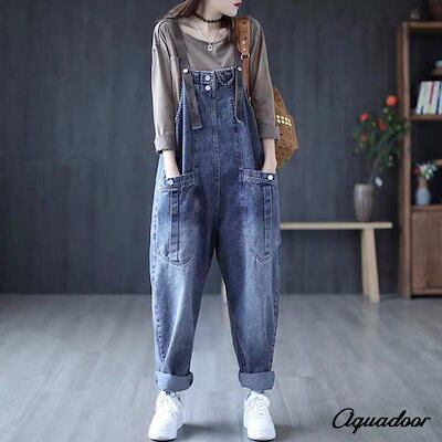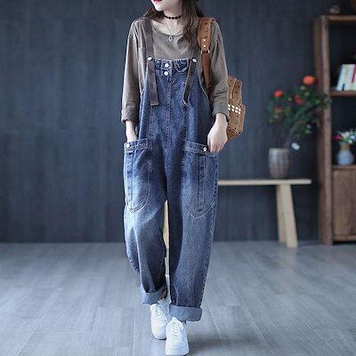 限定値下げ デニムオーバーオール レディース サロペット ロング丈 ジーンズ ゆったり 大きいサイズ おしゃれ デニムパンツ オールインワン ワイドパンツ 春 夏 秋 冬