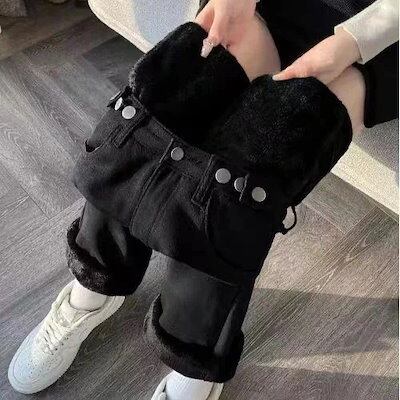 厚手 ワイドパンツ ジーンズレディース 2025冬 ハイウエスト ゆったり 暖かい ストレートロングズボン 裏起毛ズボン 裏起毛パンツ かっこいい!スラックスパンツ