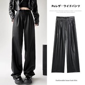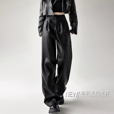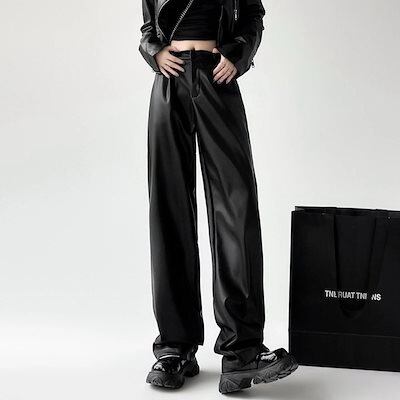 かっこいい!スラックスパンツPuレザーワイドパンツ 冬のボトムス レディース ハイウエスト PUレザー ワイドレッグパンツ ブラック コーヒー 秋 レトロ クール かっこいい おしゃれクリスマスコーデ