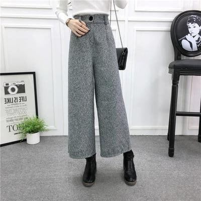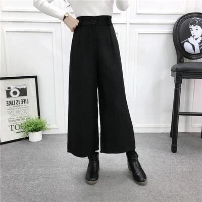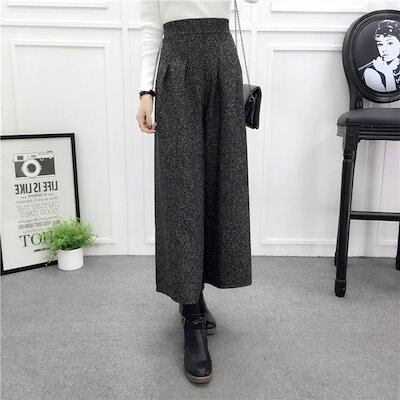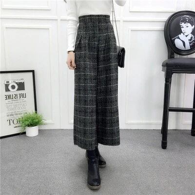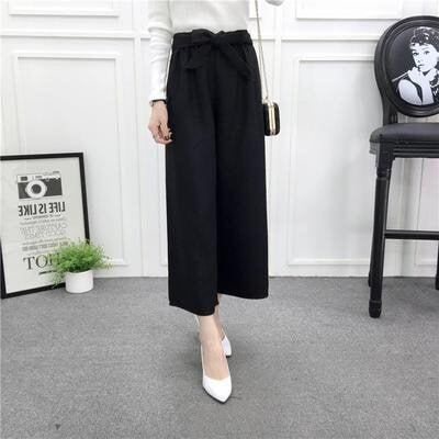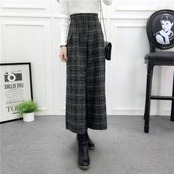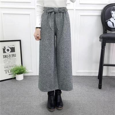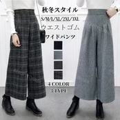 【送 料】 ガウチョパンツ 秋冬 ワイドパンツ チェック柄 無地 ウエストリボン レディース ハイウエスト ウール混 クロップド丈 ウエストゴム フレアパンツ ワイドパンツ ボトムス