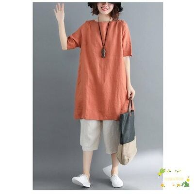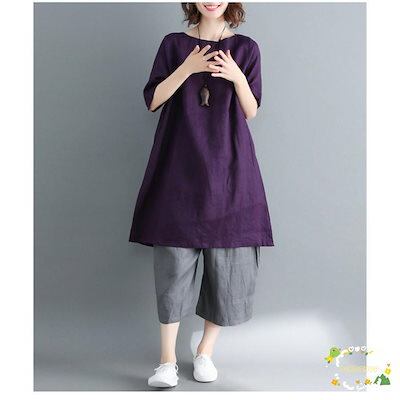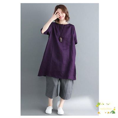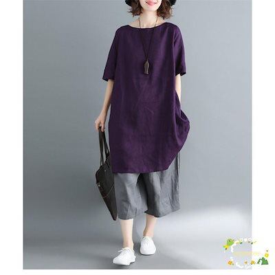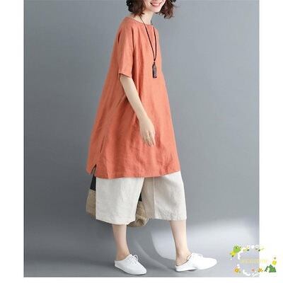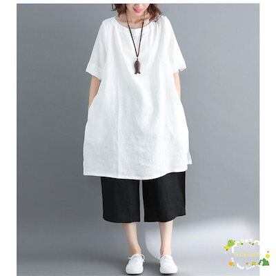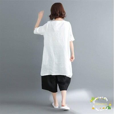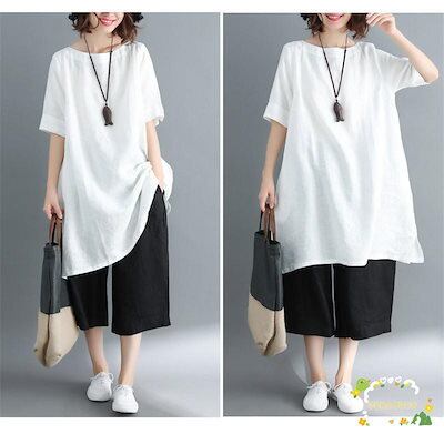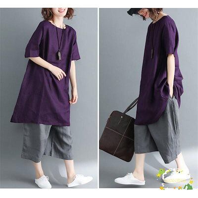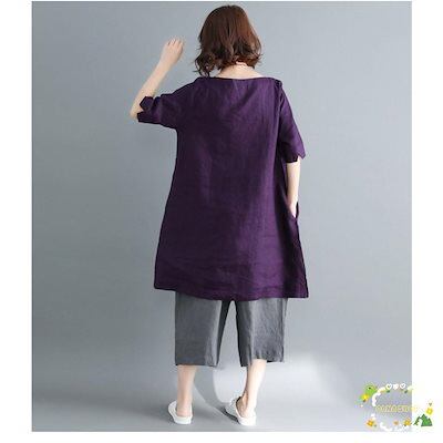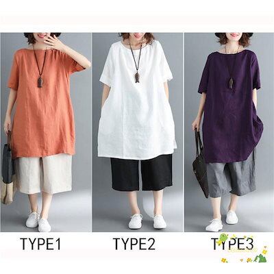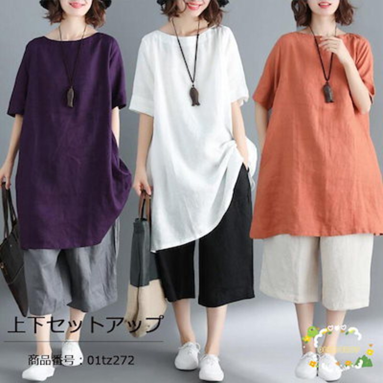 セットアップ レディース 夏 パンツ 上下セット ブラウス ワイドパンツ ガウチョ ロングブラウス リネン 半袖 七分丈 カジュアル 体型カバー 着痩せ