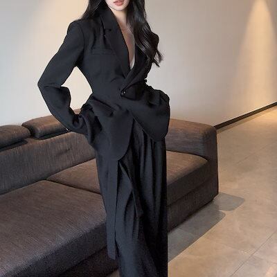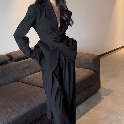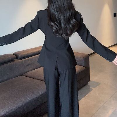 韓国系通勤スーツセット中長タイプのワイドパンツ春韓国版カジュアルスーツ
