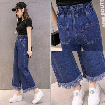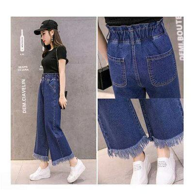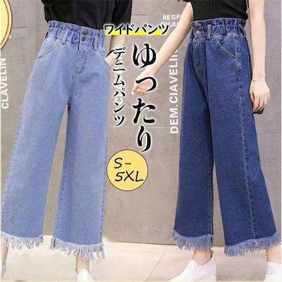 デニムパンツ レディース ワイドパンツ ハイウエスト タッセル 韓国ファッション ボトムス カジュアル ストレッチ 大きいサイズ ゆったり 旅行 大人
