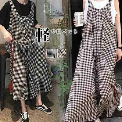 サロペット オールインワン レディース パンツ ワイドパンツ ガウチョ オーバーオール カジュアル 大きいサイズ 体型カバー チェック柄