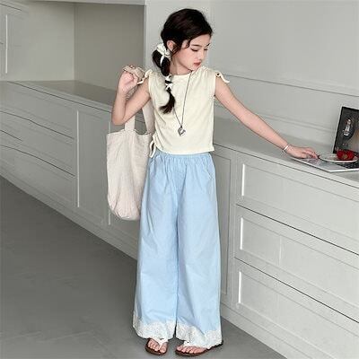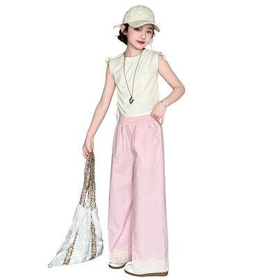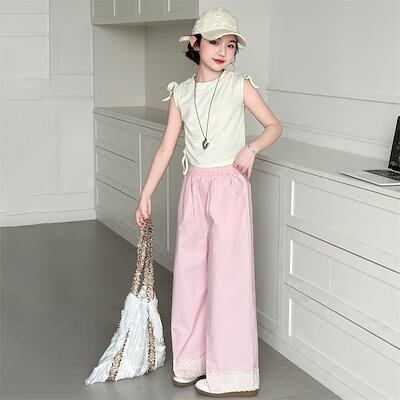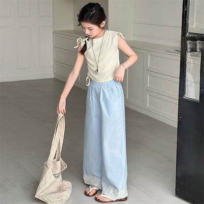 女の子の夏のスーツの新しい女の子の夏服の袖なしのカジュアルなワイドパンツの子供の薄い夏服