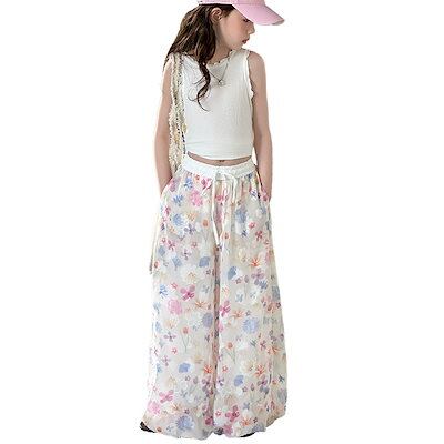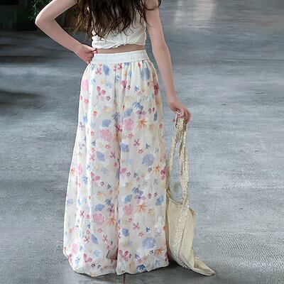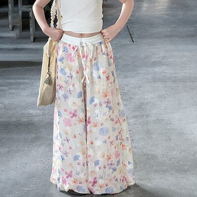 女の子のワイドパンツ夏の新しい子供のカラーのつぼみのズボンのドーパミンのカジュアルなズボンの花の灯籠のズボン