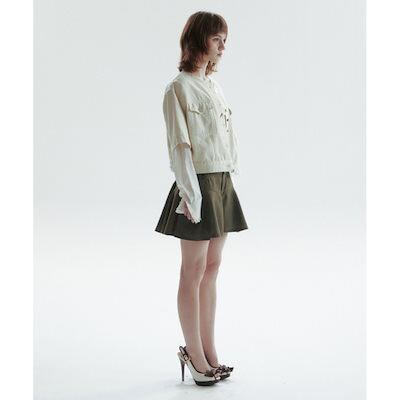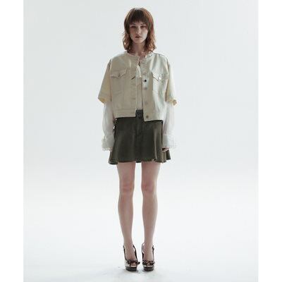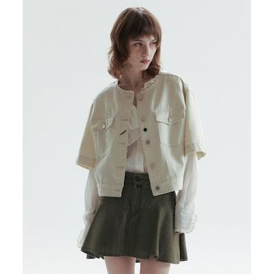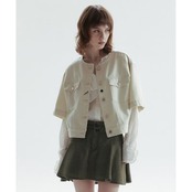 CHOWOO ラウンドネックデニムジャケット-アイボリー(レディース)