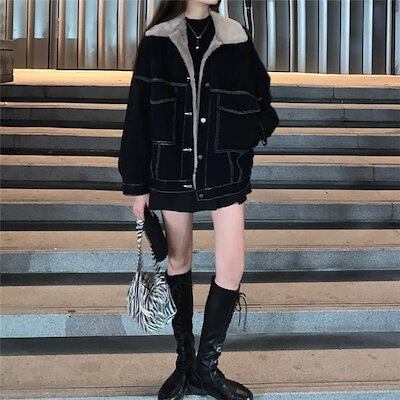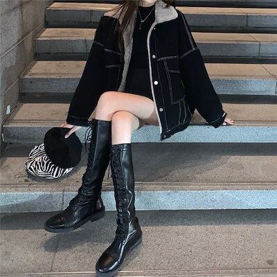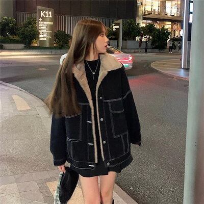 ボアジャケット デニム Gジャン レディース ブルゾン アウター 裏ボア フリースコート トップス アウトドア 防寒 カジュアル シンプル