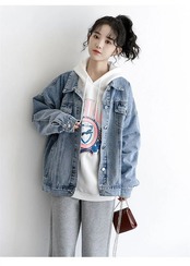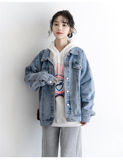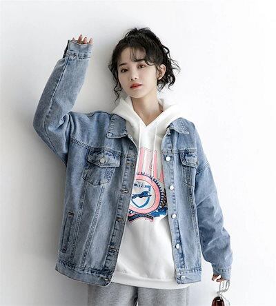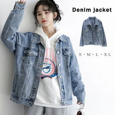 デニムジャケット コート ジャケット レディース デニム アウター スプリングコート ライトアウター 春 長袖 大きいサイズ 折襟 デニムコート 無地 ゆったり お洒落 ポケット付き オーバーサイズ