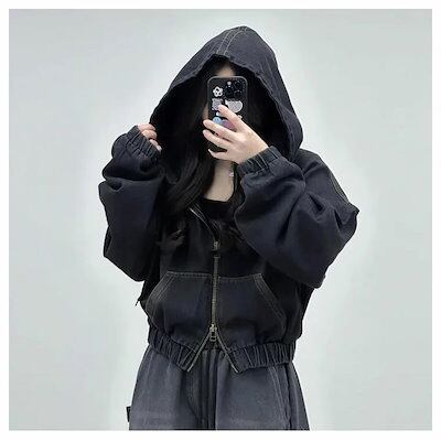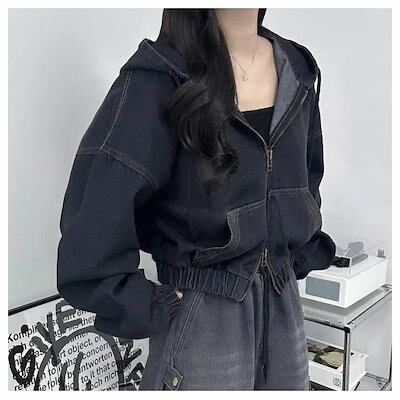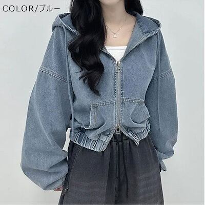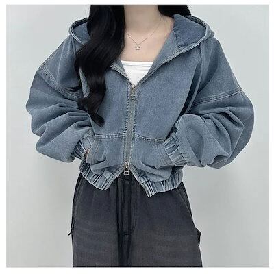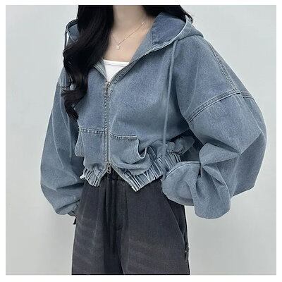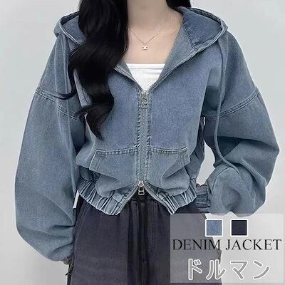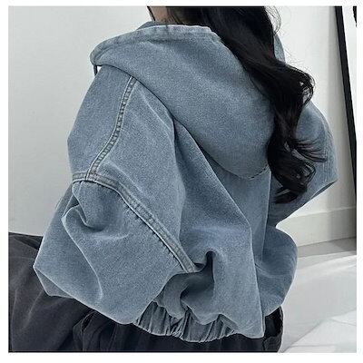 デニム ジャケット ボリューム袖 レディース キレイ め 春夏 秋 バルーン袖デニムジャケット トップス ぽわん袖 ドルマン 大きいフード ゆったり デニムジャケット アウター ショート丈 ポケット