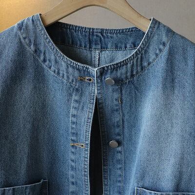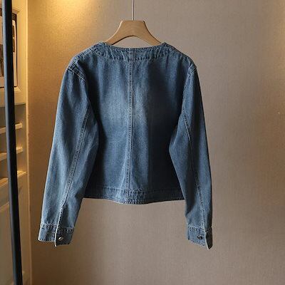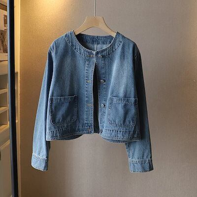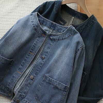 コットン デニム ジャケット レディース カジュアル 秋 春 長袖 ショート丈 ジャケット シンプル 春秋 ゆったり 羽織り きれいめ デニムジャケット 韓国風 トップス アウター 綿 オーバーサイズ