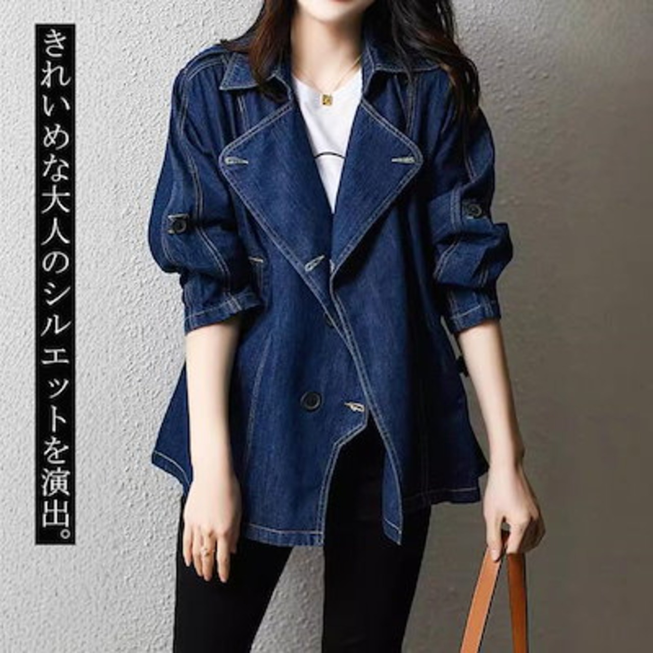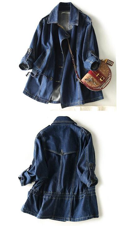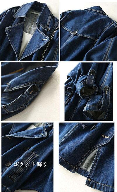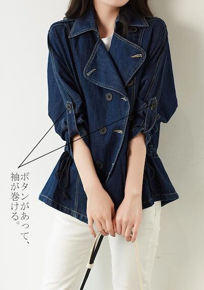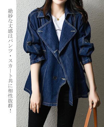 デニム ジャケット レディース 秋 羽織り テーラードジャケット トップス コート 長袖 デニムジャケット ウエスト紐 タック 前開着 ゆったり 無地 大人 かわいい オフィス きれいめ こなれ感 S
