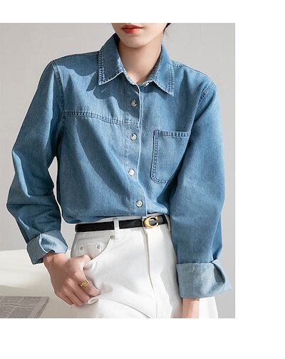 デニムシャツ 長袖 レディース シャツジャケット デニム カジュアルシャツ レトロ 長袖シャツ ゆったり ネルシャツ 春 秋 トップス レイヤードコーデ ライトアウター シャツ デニムシャツジャケット