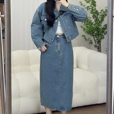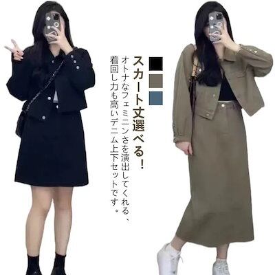 デニムスカート おしゃれ ジャケット カジュアル 秋 レディース 春 ジージャン デニム 3XL Gジャン 2点セット 上下 長袖 セットアップ トップス ボトムス アメカジ ビンテージ M L XL