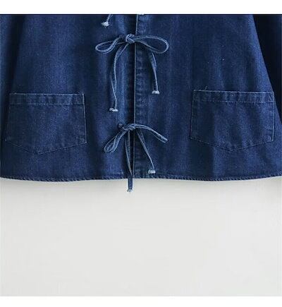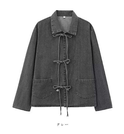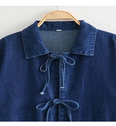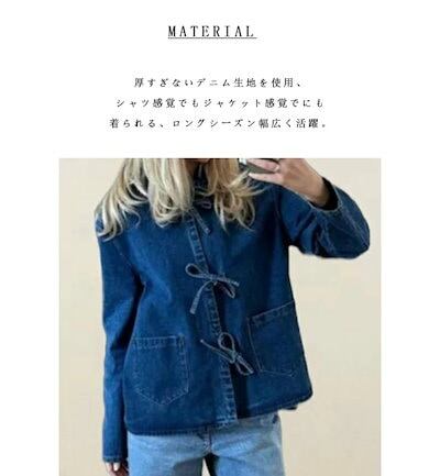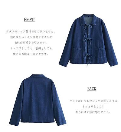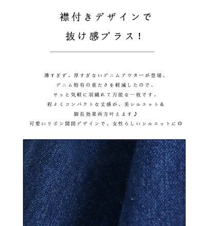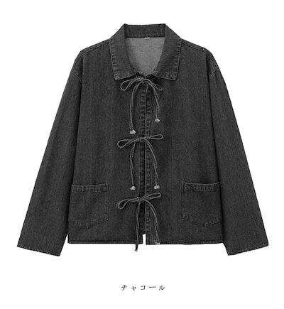 デニムジャケット レディース 春 襟付き シャツ 女の子 アウター デニムシャツ 折り襟 リボン デニムアウター ショート丈 長袖 羽織 ジャケット ショート 抜け感 ブルゾン ライトアウター ショー