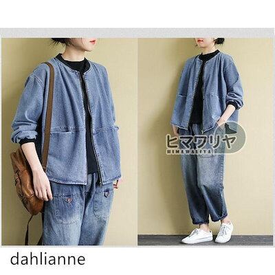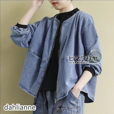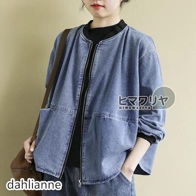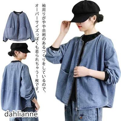 2枚購入で200円OFF 秋冬の新商品おすすめ ノーカラーデニムジャケット レディース ゆったり アウター ノーカラー ジャケット ジップアップ ショート丈 長袖 ブルゾン ジージャン 今日の活動