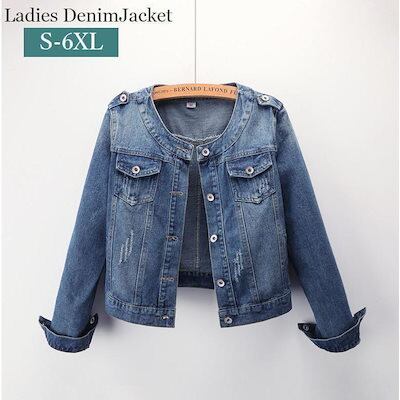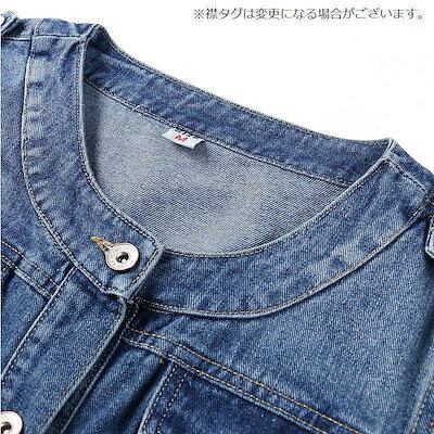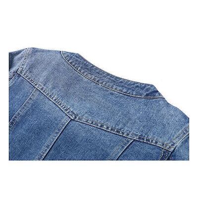 2枚購入で200円OFF 秋冬の新商品おすすめ ジージャン Gジャン デニムジャケット 長袖 レディース アウター ノーカラー 上着 羽織り 前開き ポケット付き ダメージ 大きいサイズあり 婦