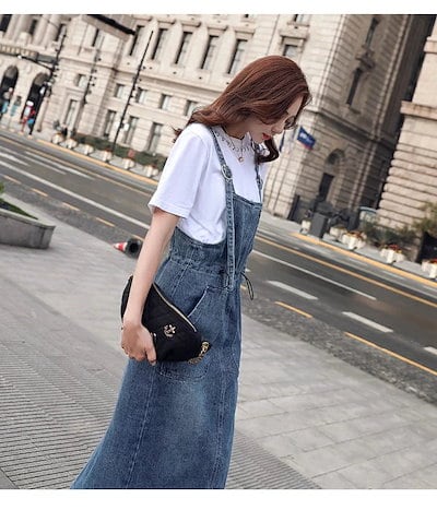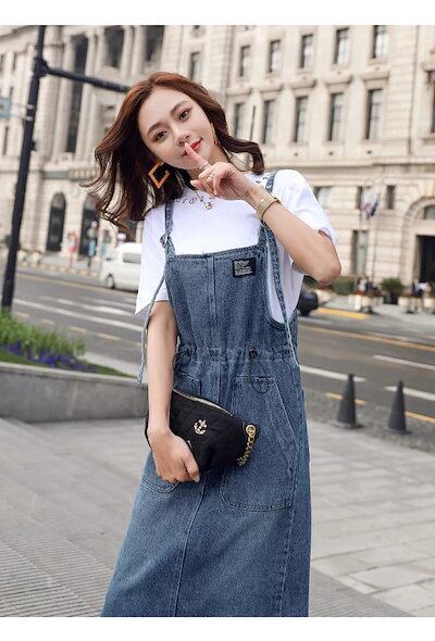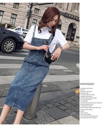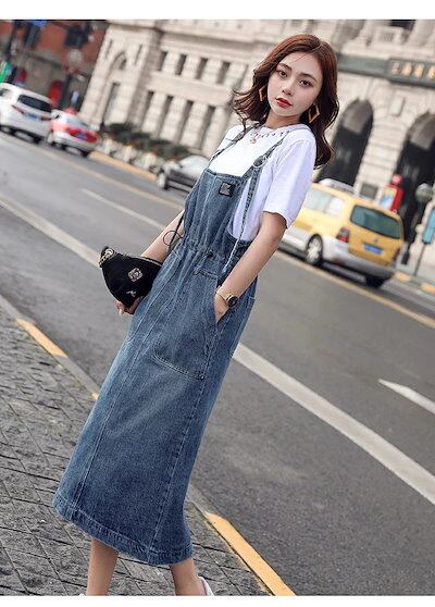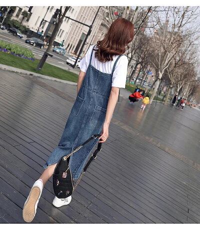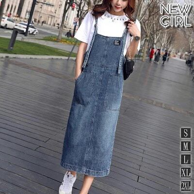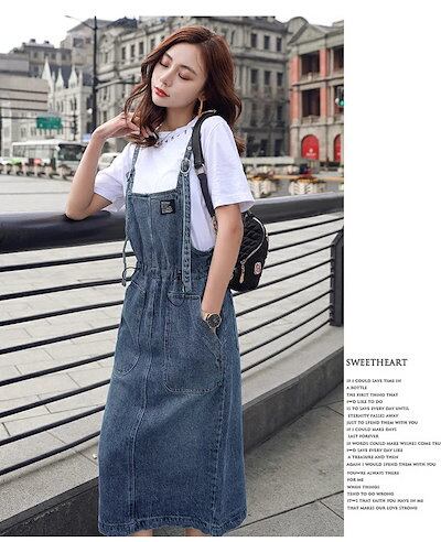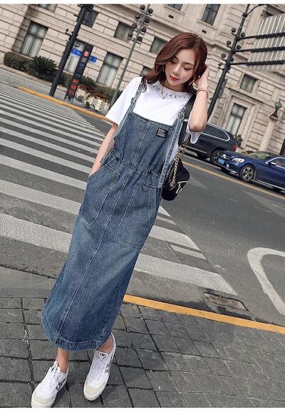 デニム ジャンパースカート レディース ロング デニム ジャンスカ フロントポケット サロペットスカート スリット きれいめ 着痩せ 春夏秋 おしゃれ カジュアル ゆったり ロング丈 マキシ丈 肩紐