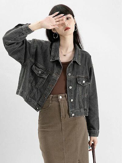 デニムジャケット レディース ショート Gジャン アウター ゆったり オーバーサイズ 柔らかデニム 春 春服 春コート 長袖 カジュアル きれいめ おしゃれ ファッション 可